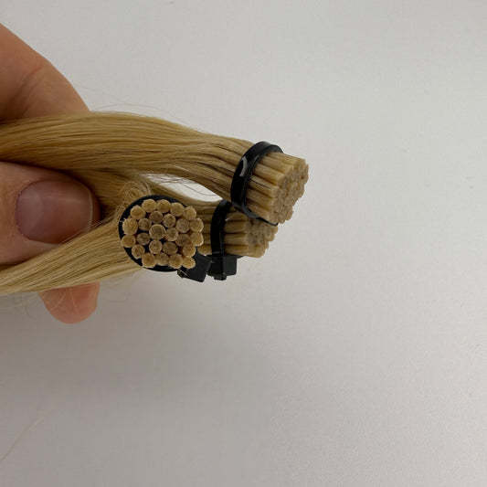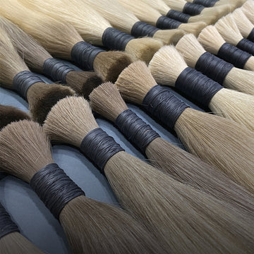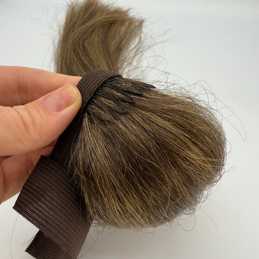 Hand-tied hair wefting is the process of creating strong wefts where each hair strand is securely attached. This technique can be used for various purposes, including Hollywood-style hair extensions, creating hairpieces, and many others.